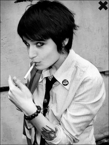 * Чёрный или розовый ремень (часто из кожезаменителя по причине приверженности некоторых эмо-кидов к веганизму) с заклёпками, провисающими цепями и большой бляхой с символикой.